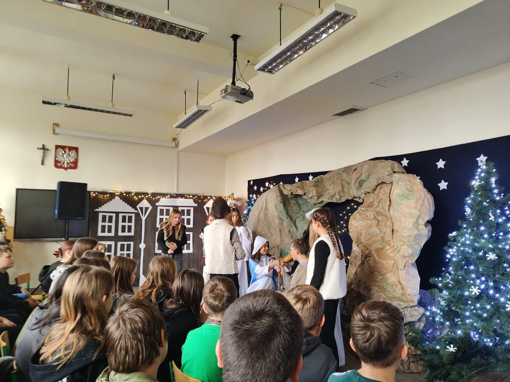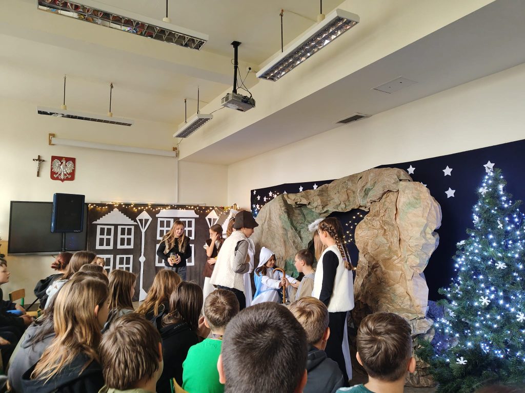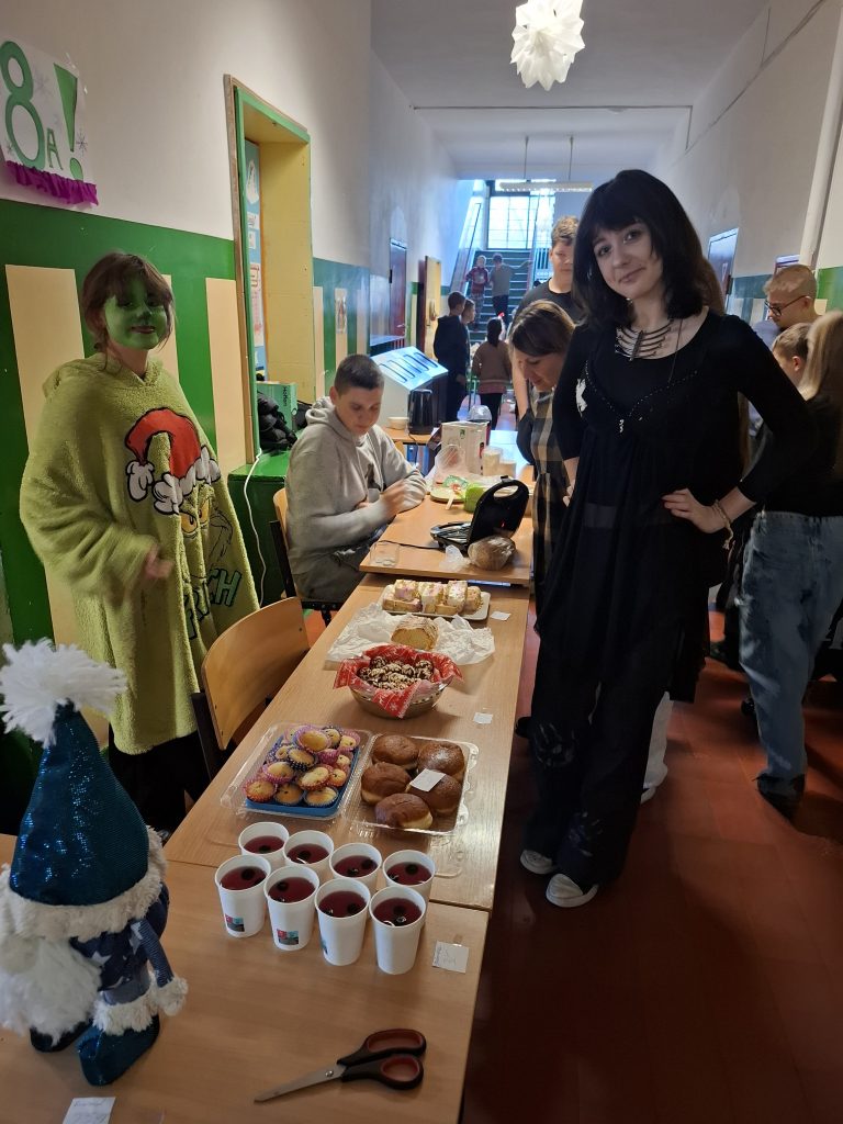 18 grudnia 2025 r. w naszej szkole odbył się kiermasz świąteczny. Każda klasa przygotowała się wyjątkowo solidnie. Jednak nie tylko smakołykiem żyje człowiek! Mogliśmy również podziwiać jasełka w wykonaniu uczniów klasy Va, których przygotowała p. Halina Papiernik. I choć na korytarzu pojawił się Grinch, dobrej zabawy i świątecznej atmosfery nie udało mu się popsuć.