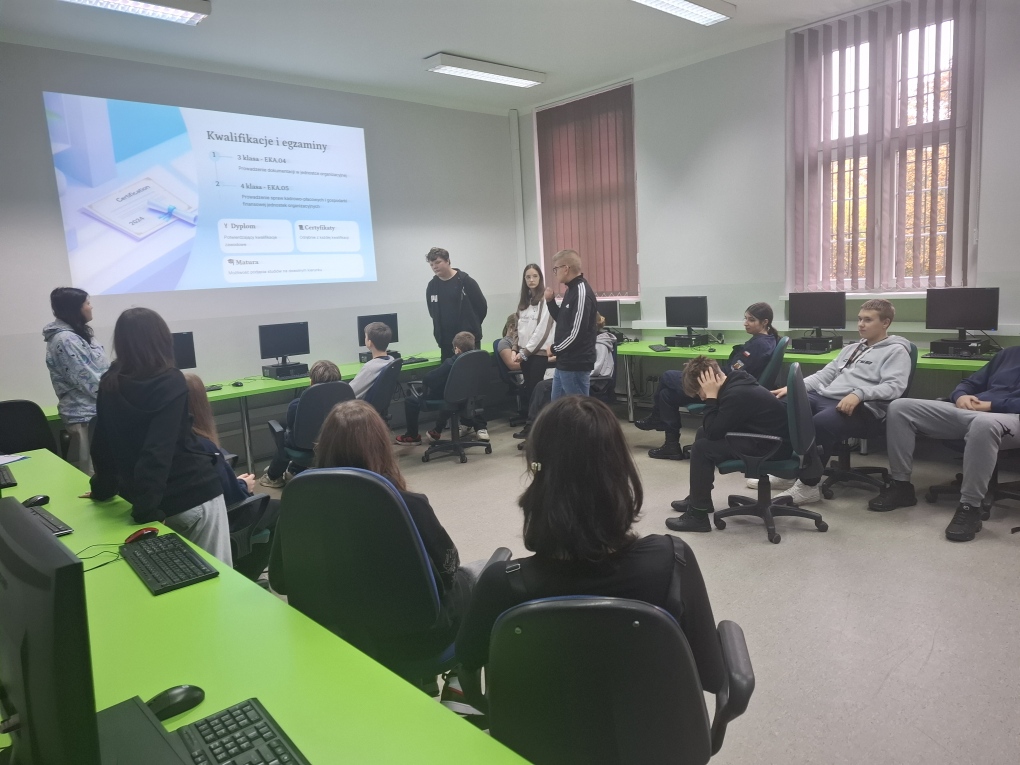 24 października 2025 r. klasa VIII a odwiedziła Zespół Szkół Ekonomiczno-Usługowych w Zabrzu. Uczniowie poznali ofertę edukacyjną i być może niektórzy z nich w przyszłym roku zawitają w progi tej placówki.